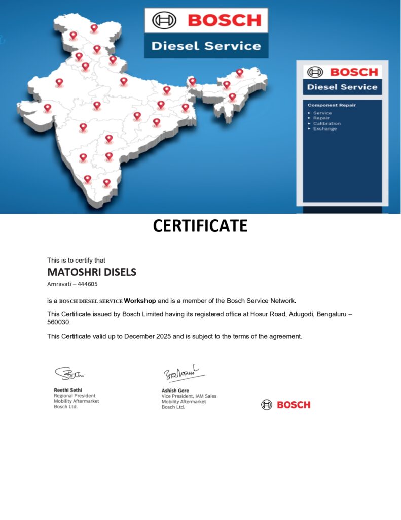 Matoshree Diesel & services founded in 2011 by Mr. Ravindra Badgujar, Matoshree Diesel and Services is a trusted name in diesel fuel system repair in Amravati. With over 22 years of prior experience as Head Mechanic at Vora Brothers, Mr. Badgujar brought unmatched expertise to build a workshop known for quality, honesty, and reliable service.